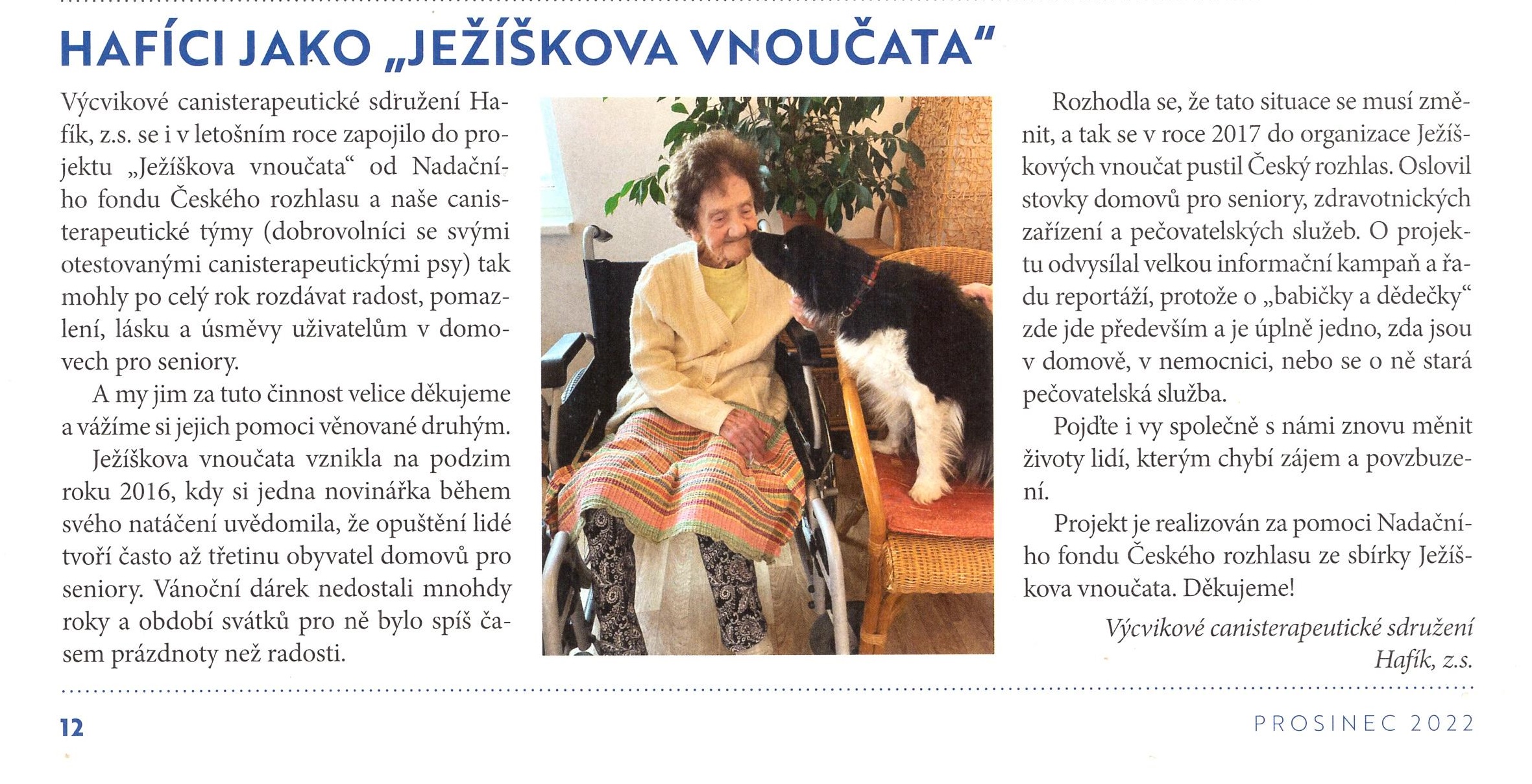 Nově si můžete přečíst článek s předsedkyní Hafíka Jaroslavou Bickovou v Jindřichohradeck...