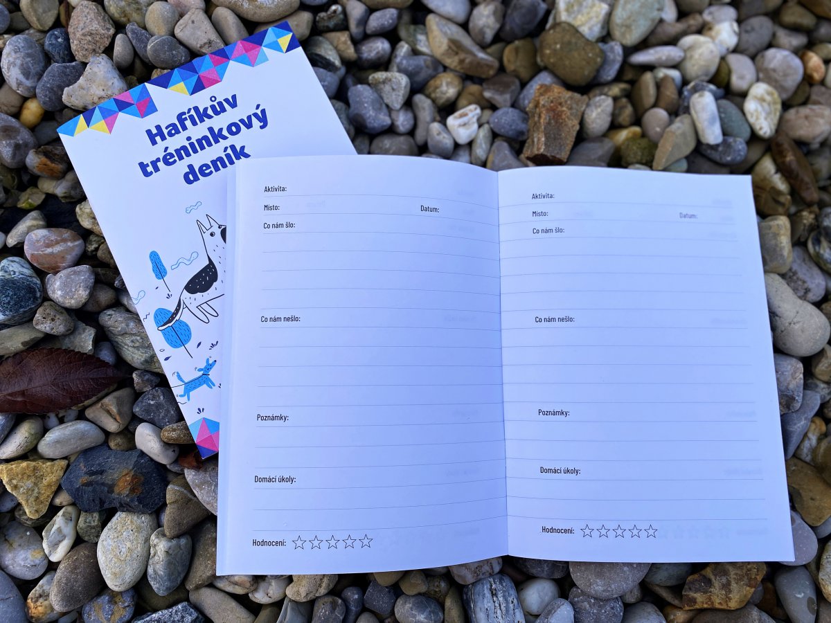 Hafíkův tréninkový deník je nepostradatelnou součástí každého pejskaře! Zápisníky můžete využívat ve dvou variantách, přičemž je od sebe poznáte dle odlišného obrázku na titulní straně. První z nich je čistý linkovaný sešit, ve kterém můžete popustit uzdu své fantazii a zachytit zde své myšlenky, poznámky z pracovních porad nebo i nákupní seznam na nedělní oběd. Druhý zápisník bezpochyby poslouží jako tréninkový deník, v němž jsou předtištěné pomocné texty pro shrnutí výcvikového dne a prostor pro zapsání dalších plánů vedoucích k správnému soužití mezi Vámi a Vašim čtyřnohým parťákem.