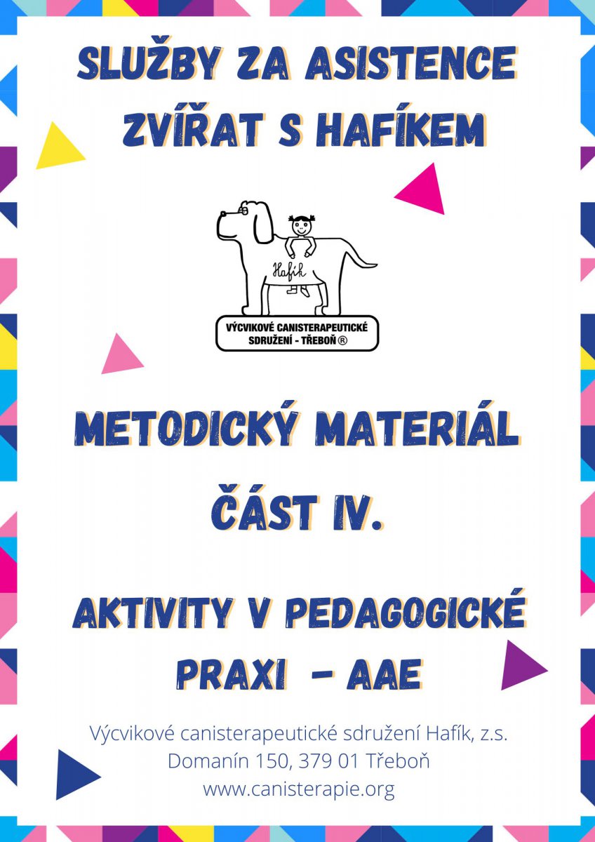 Čtvrtá část metodického materiálu je sestavena na téma Aktivity v pedagogické praci - AAE, kde najdete teoretický úvod a 21 různých nápadů na aktivity na 30 stránkách. Forma materiálu je elektronická (pdf).