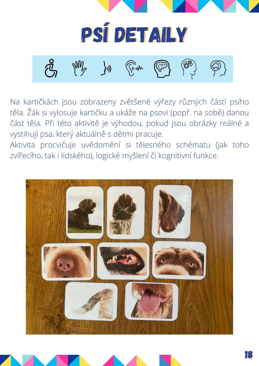 Realizaci odborných služeb za asistence zvířat se naše sdružení věnuje již 21 let. Za tuto dobu jsme měli možnost pracovat s různorodými skupinami klientů, díky čemuž jsme posbírali mnoho zajímavých nápadů a inspirací na aktivity využívané během služeb za asistence zvířat. Tyto jsme pro širokou veřejnost nashromáždili do tématicky zaměřených metodických materiálů, v nichž jsou jednotlivé aktivity nafoceny, stručně popsány a jsou doplněny o možné modifikace dle specifik dané skupiny klientů. Metodický materiál poskytuje též stručný teoretický vhled do dané problematiky, na niž se zaměřuje.