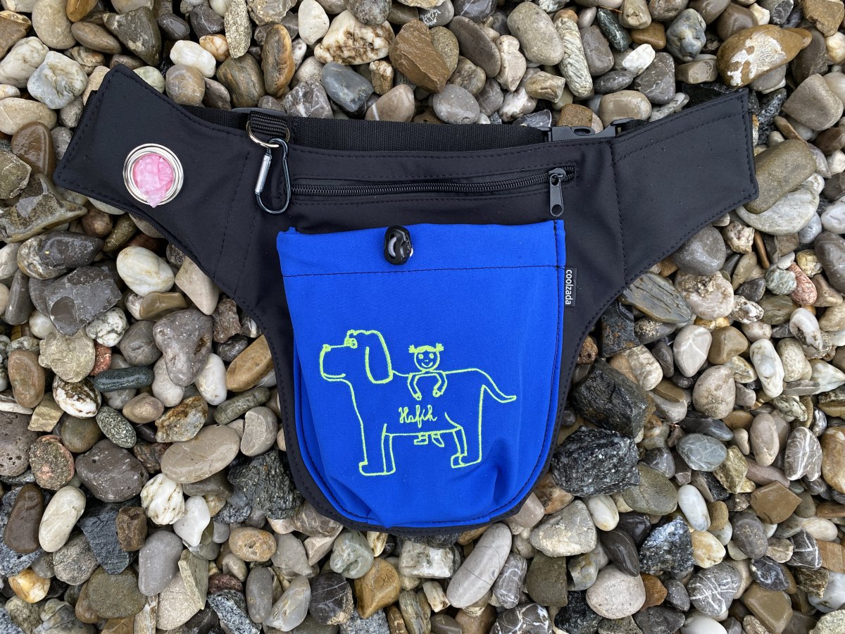 Mějte s Hafíkem vše potřebné pro Vás i Vašeho pejska vždy u sebe. Pamlskovník s naším logem je vyrobený z funkčního nepromokavého softshellu. K dispozici najdete pamlskovníky ve dvou velikostech dle délky popruhu kolem pasu.